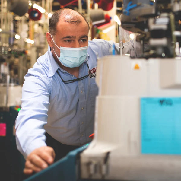 在 Darn Tough 創立之初(約 2003 年),所有人都將紡織品生產外包並轉移到海外。但我們擁有別人沒有的東西--三代人的製襪經驗、對整個生產過程的完全掌控,以及繼續在佛蒙特州生產襪子的意願。這表明了我們對工藝和產品的承諾。